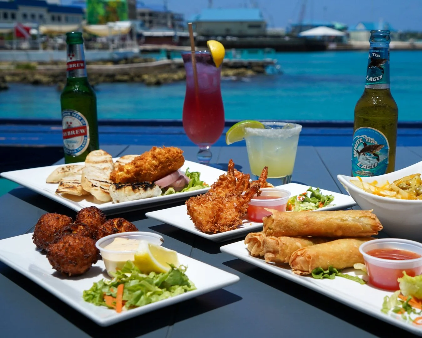 Conch Fritters, Coconut Shrimp, Veggie Spring Rolls, Curry Cheese Fries And Baked Brie